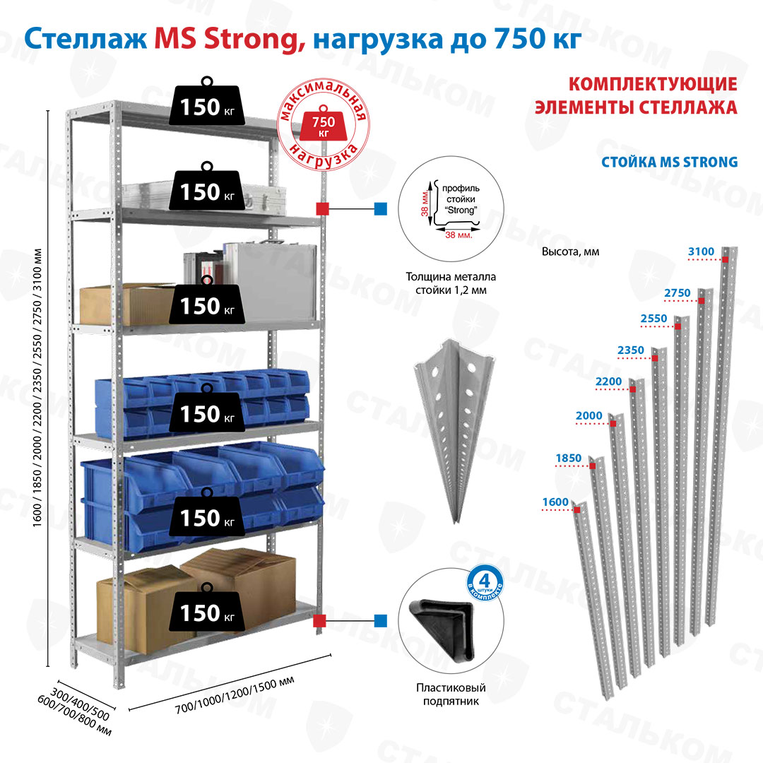 Купить стеллаж MS Strong 2750х1200х400, 6 полок в Стерлитамаке с доставкой